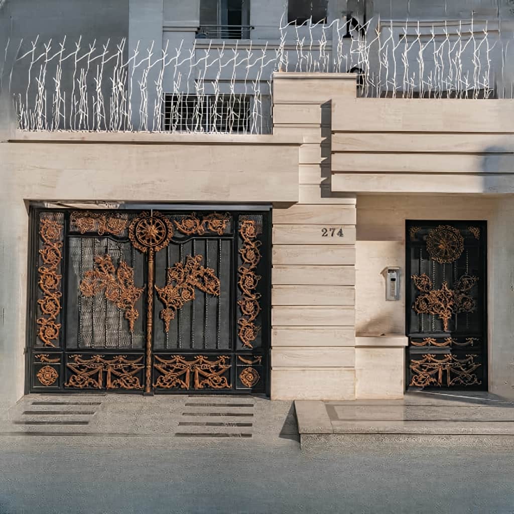 - طرح درب فلزی لادن بر پایه فرم های کلاسیک و تاج فرفورژه طراحی شده تا با نماهای سنگی و رومی هماهنگی کامل داشته باشد